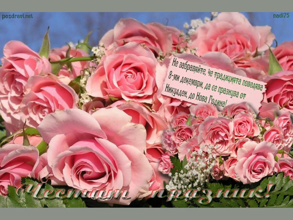 Ключови фрази: Букет разцъфнали рози розови послание картичка пожелание весел честит празник студенти