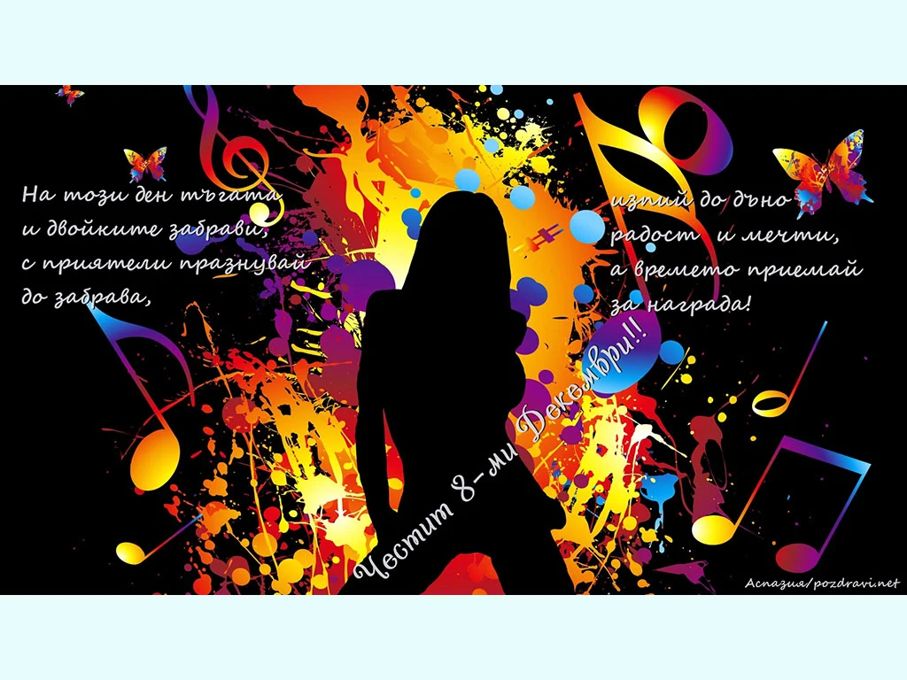 Ключови фрази: На този ден тъгата двойките забрави приятели празнувай до забрава изпий до дъно радост мечти времето приемай награда.