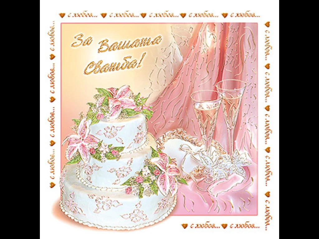 За Вашата Сватба! ..с любов...Мили младоженци, бъдете здрави и щастливи и по-често да си казвате 'Горчиво!' Нека този месец меден, бъде месeц вечен, не-последен! Щастлив да ви е бракът сто години и скоро щъркел да ви кацне на комина!
