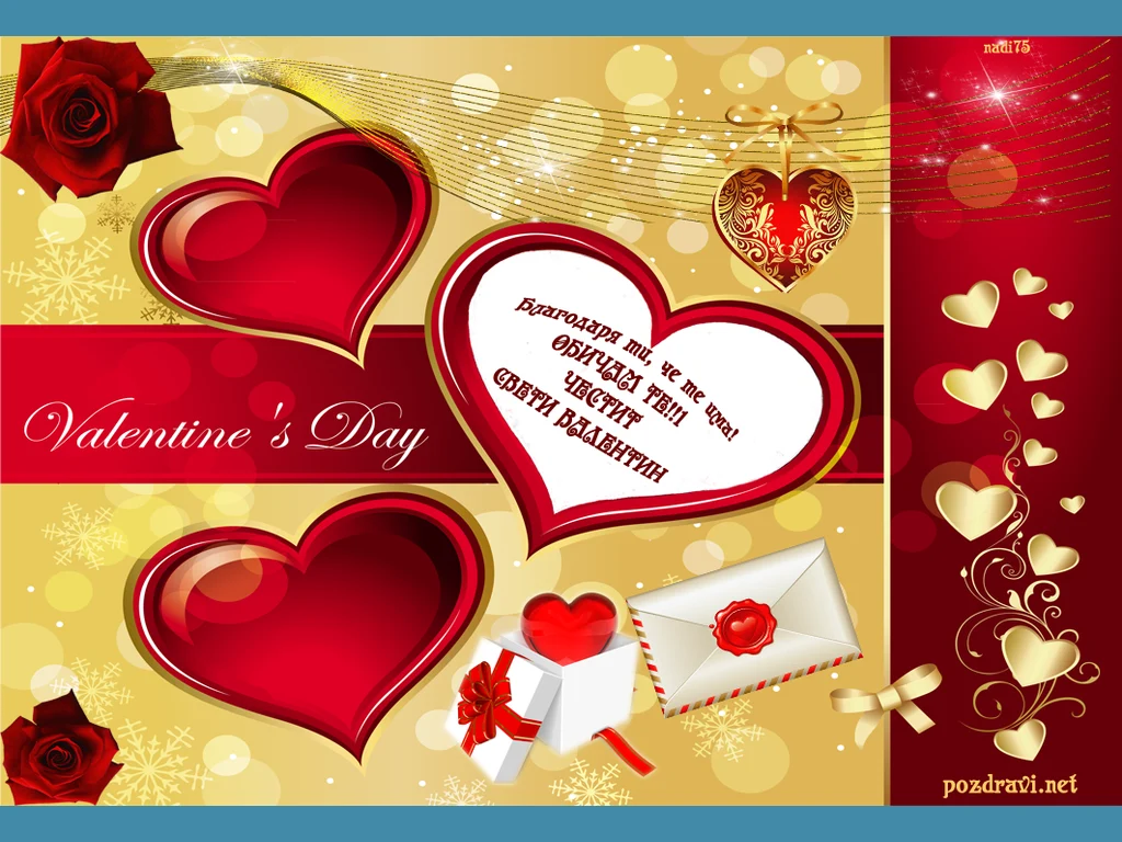 Ключови фрази: Картичка заклеймена любов завинаги заедно плик писмо сърца панделки подарък поздрави пожелание празник свети Валентин