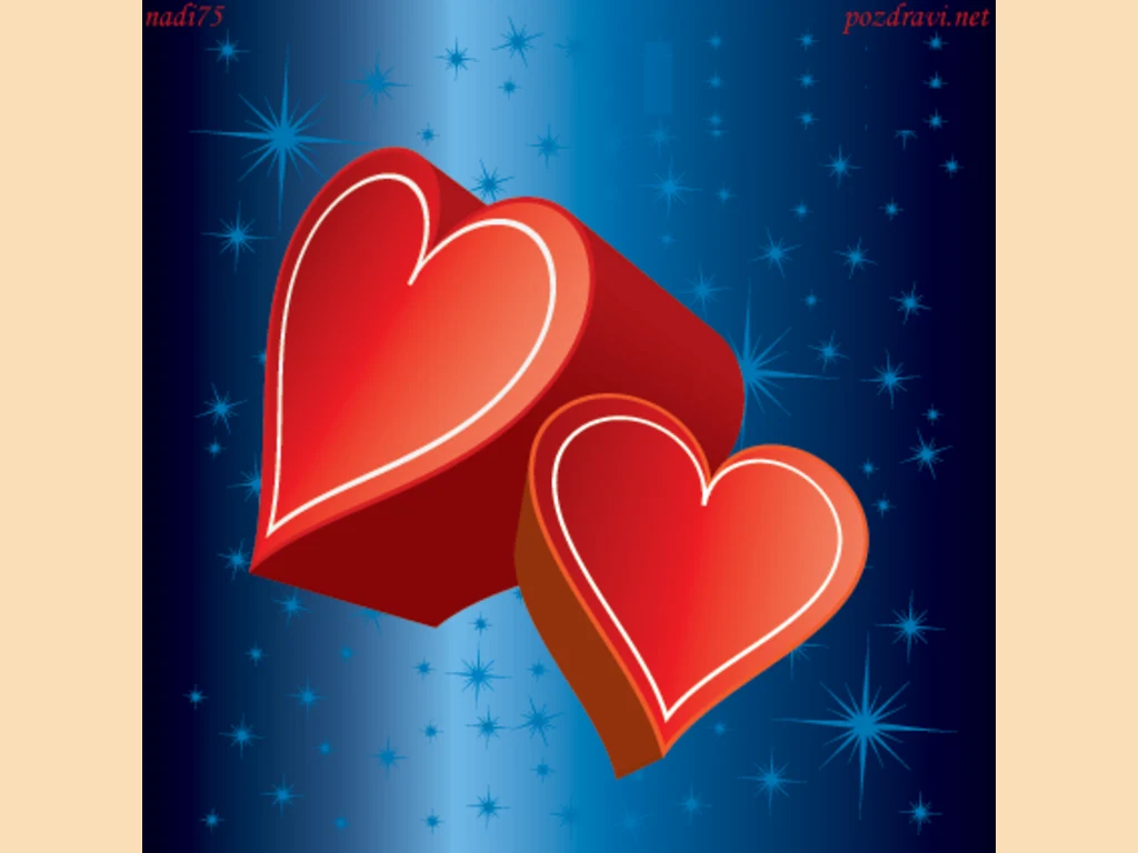 Ключови фрази: Универсална картичка пожелание поздрави празник Свети Валентин две червени сърца звездички