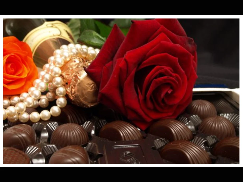 Ключови фрази: Картичка бутилка шампанско перлена огърлица разцъвнали рози кутия шоколадови бонбони поздрави честит Свети Валентин празнува Валентина Валя Валери пожелания здраве любов истинска щастие късмет