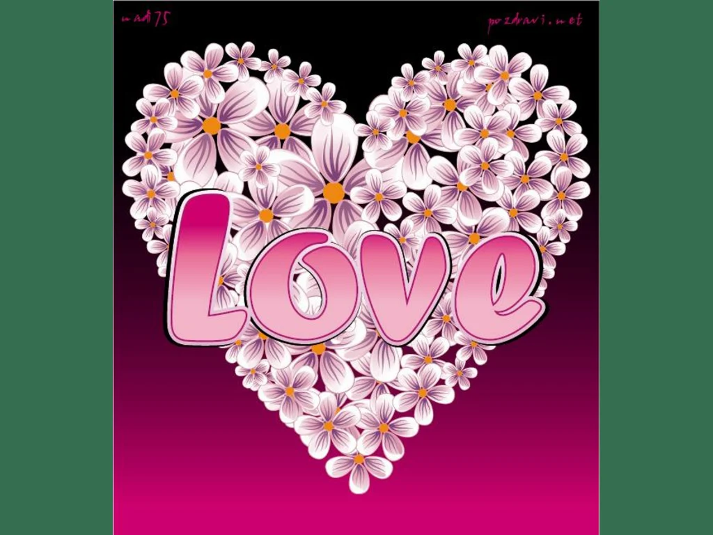 Ключови фрази: Картичка поздрави пожелание празник свети Валентин сърце обич цветя преливащо лилаво красота любов