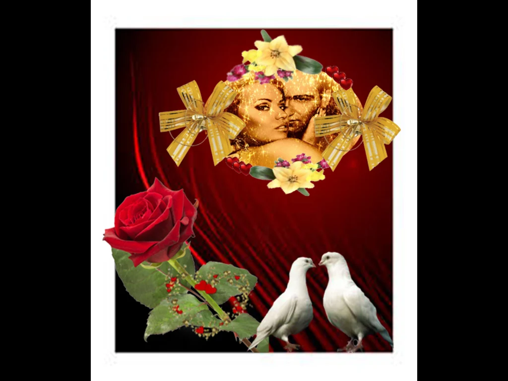 Ключови фрази: Картичка романтична интимна любовна наздравица два бели гълъби сърчица червена алена роза панделки звездички поздрави пожелание здраве обич
