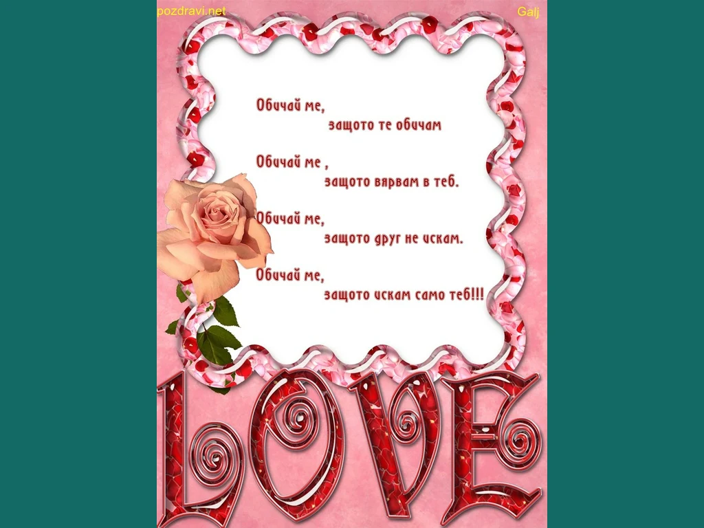 Ключови фрази: Обичай силно картичка празник свети Валентин пожелание любов вяра бъдеще розово цвете роза