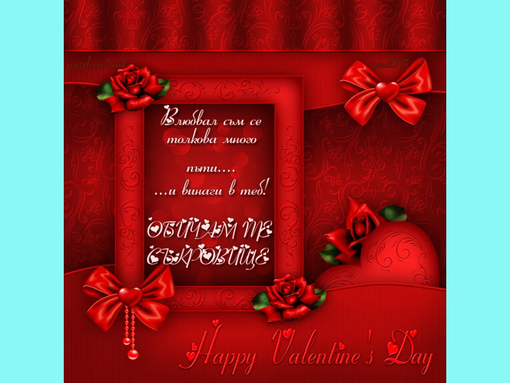 Ключови фрази: Картичка пожелание поздрави червени панделки сърца рози свети щастлив празник мое съкровище