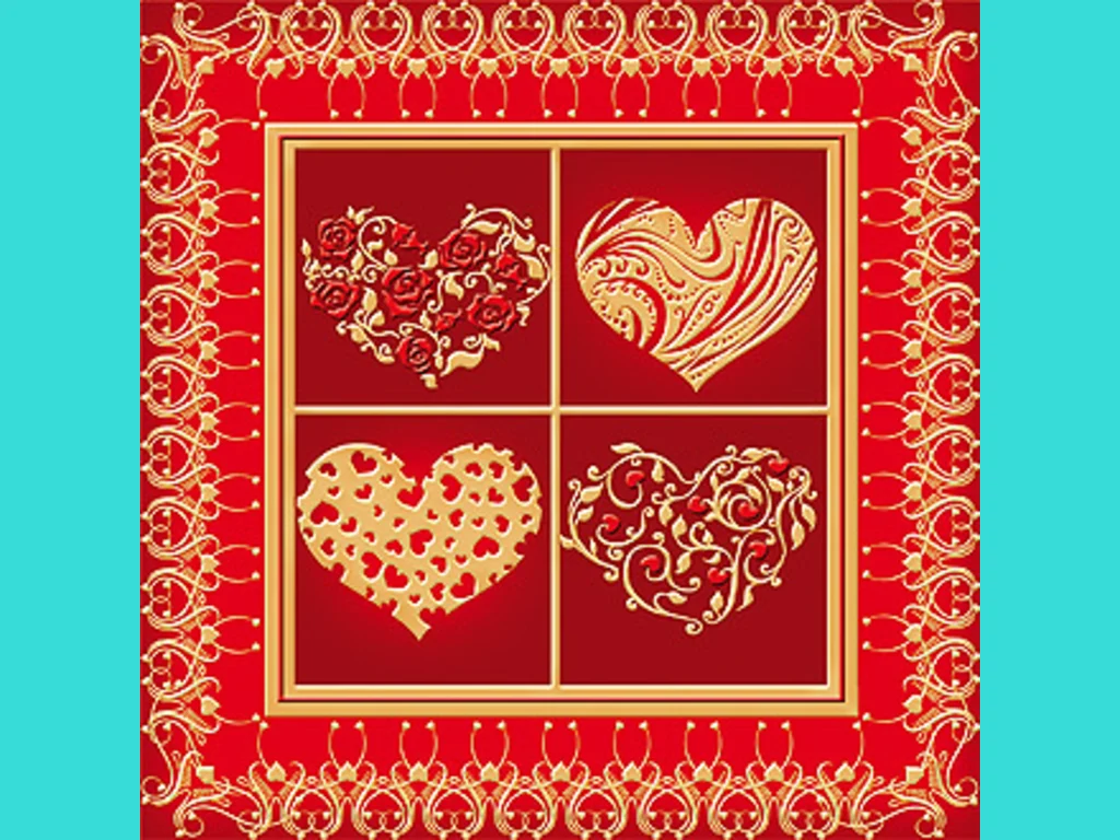 Ключови фрази: Картичка изискана червена любима красива сърца орнаменти гравюра поздрави пожелание незабравима нощ любов празник свети Валентин