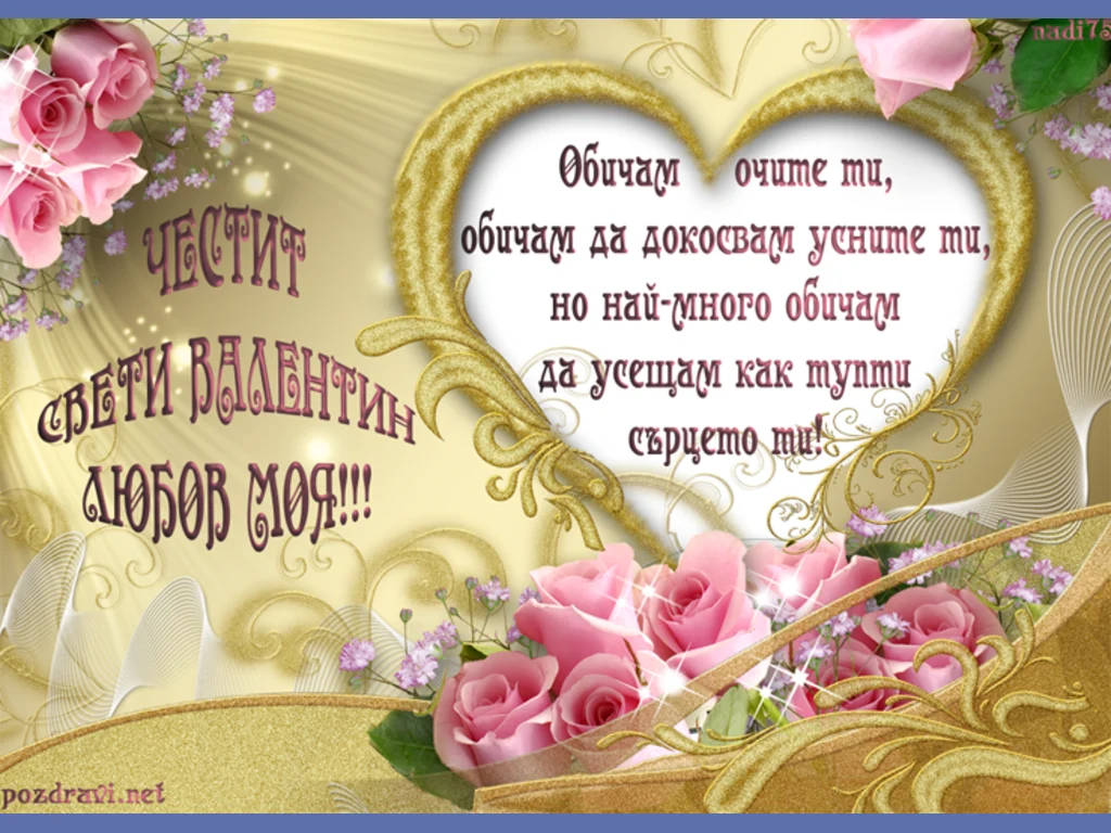 Ключови фрази: Картичка пожелание поздрави празник свети Валентин злато сърце рози букет цветя влюбени любов моя