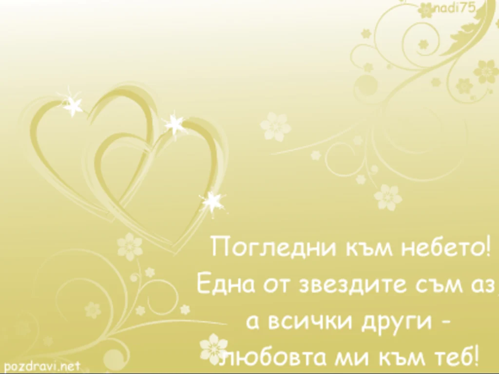 Ключови фрази: Погледни небето звездите любов красота поздрави картичка рисувана цветя слети сърца послание любими празник свети Валентин
