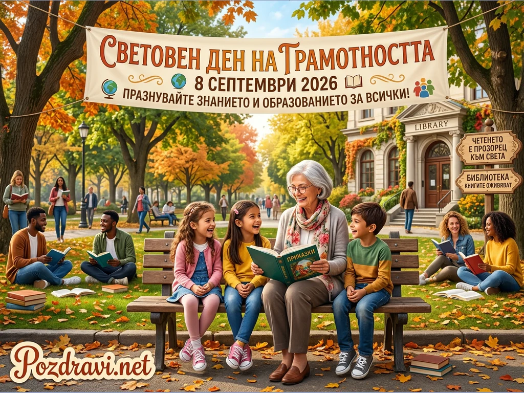 Ключови фрази: Световен ден грамотност, 8 септември 2026, Четене деца парк, Образование знание, Библиотека книги
