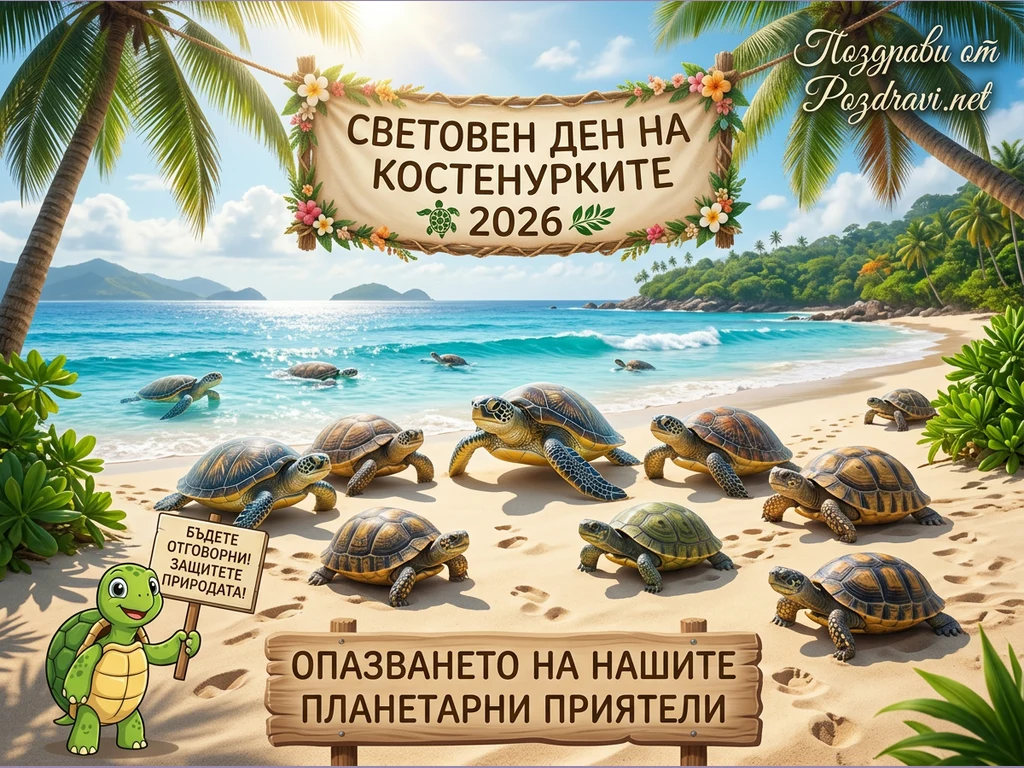 Ключови фрази: Световен ден на костенурките, Опазване на костенурки, Тропически плаж костенурки, Поздрави костенурки, Защита на природата