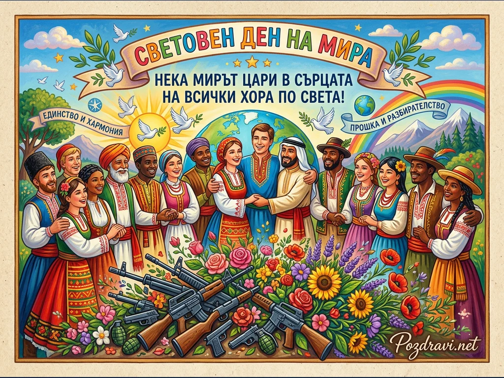 Ключови фрази: Световен ден на мира, единство на народите, мир без оръжия, прошка и разбирателство, глобална хармония
