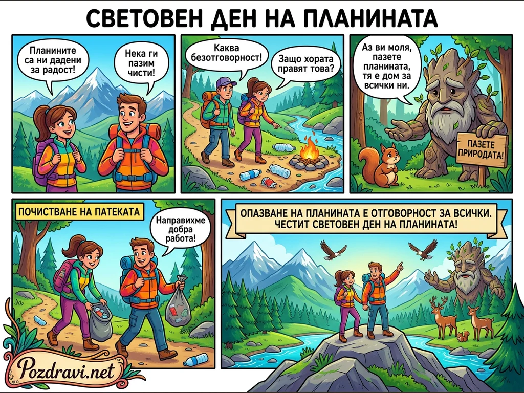 Ключови фрази: Световен ден на планината, Опазване на природата, Почистване на планина, Еко туризъм, Планински комикс