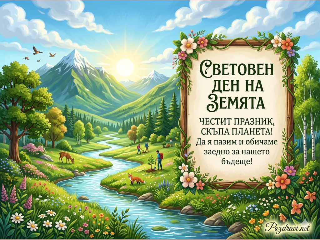 Ключови фрази: световен ден на земята, честит празник скъпа планета, опазване на околната среда, природа