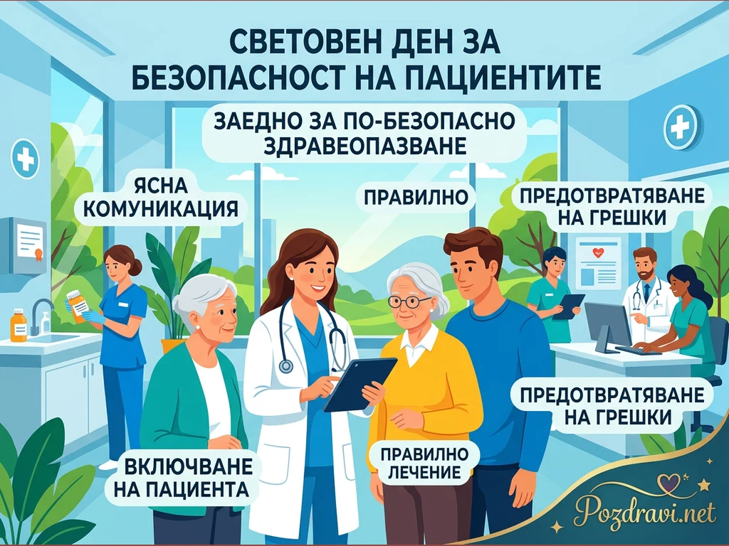 Ключови фрази: Световен ден безопасност пациенти, Безопасно здравеопазване, Предотвратяване медицински грешки, Комуникация лекар пациент, Включване пациенти лечение