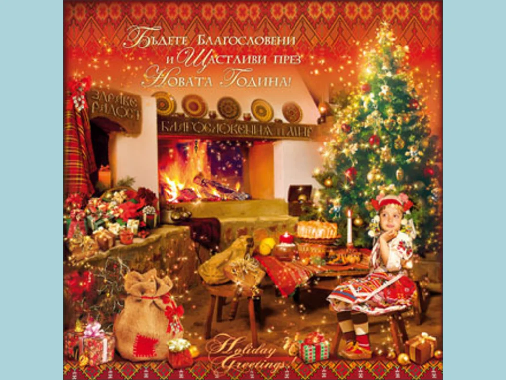 Ключови фрази: Уютен дом трапеза камина огън жарава украса елха коледна подаръци момиченце национална носия свещичка пламък накити благословия семейство празник честита коледа щастлива нова година