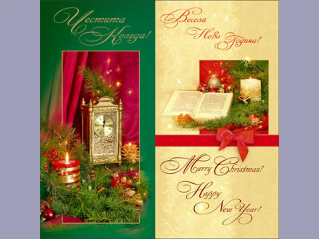 Ключови фрази: Картичка поздрави пожелание честита коледа библия благословение горящи свещи пламъчета червена панделкаборови клонкиукраса новогодишна часовник време весела нова година