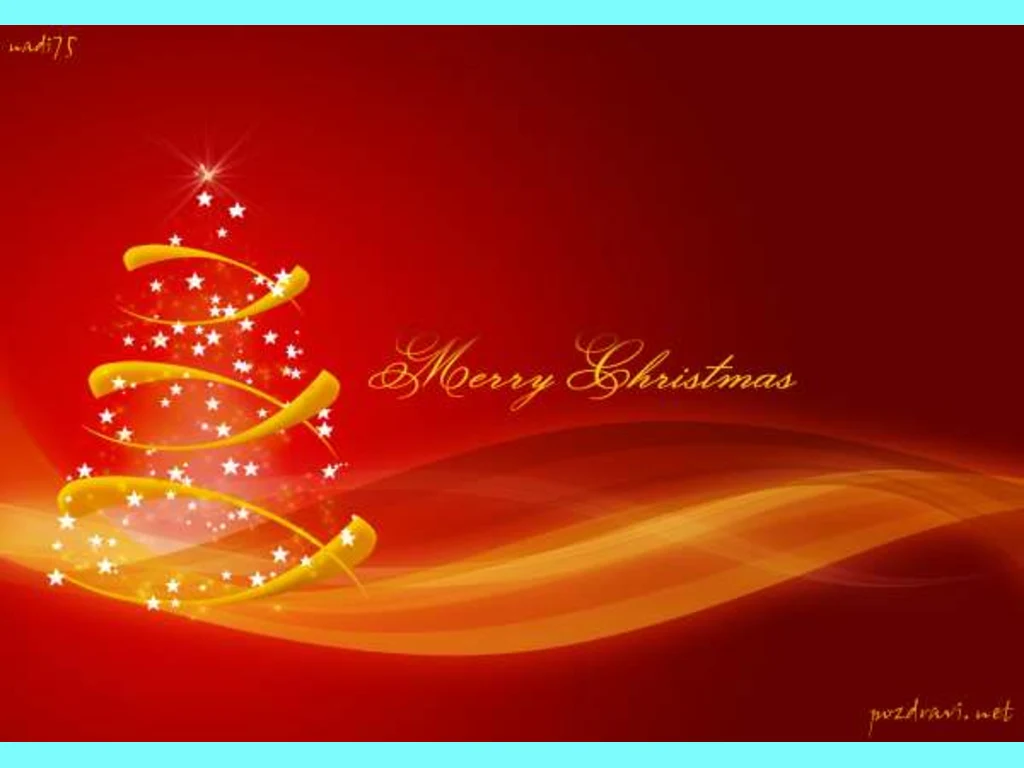 Ключови фрази: Картичка стилна червена украсена коледна елха светеща звездички пожелание поздрави весели празници
