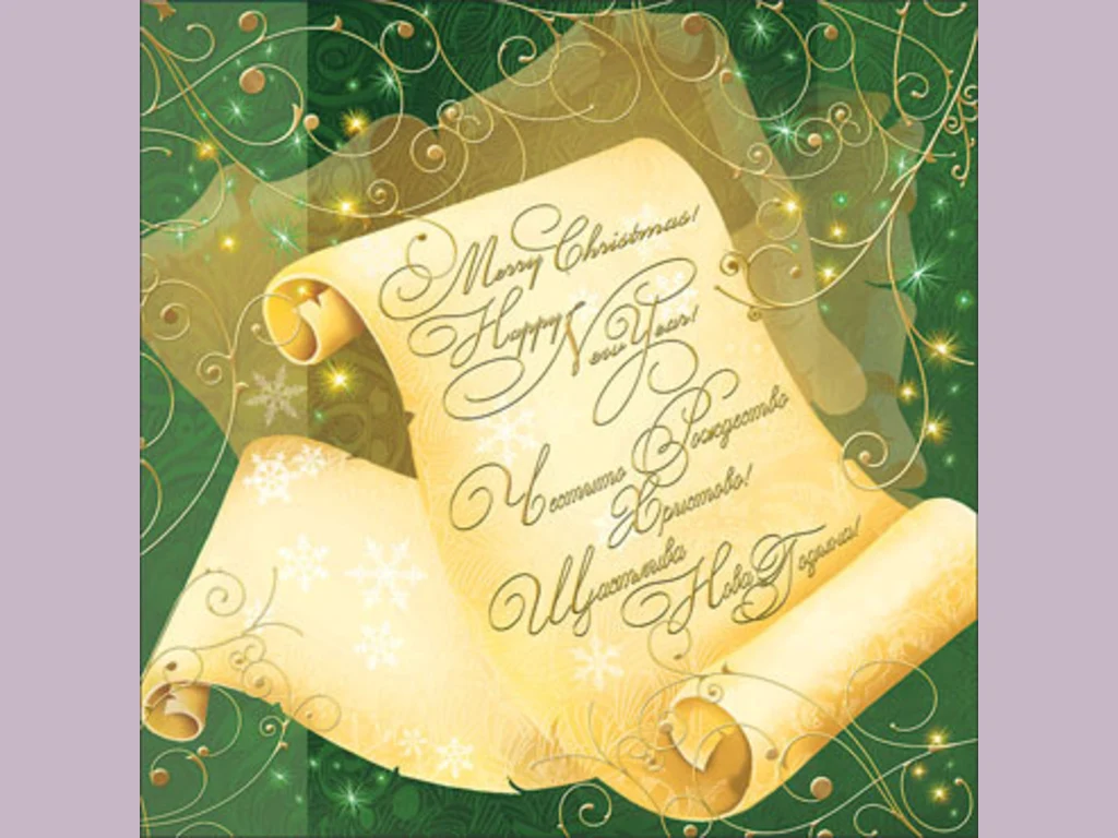 Ключови фрази: Празнична зелена картичка новогодишни играчки коледни украси звездички поздрави пожелание любов щастие късмет благополучие