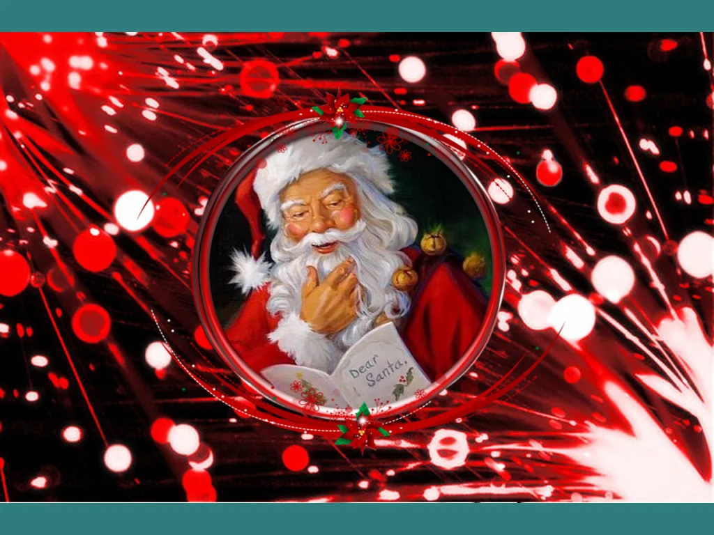 Ключови фрази: Картичка дядо мраз белобрад коледни звездички играчки подаръци поздрави пожелания снежинки новогодишна украса честита коледа фоерверки празник