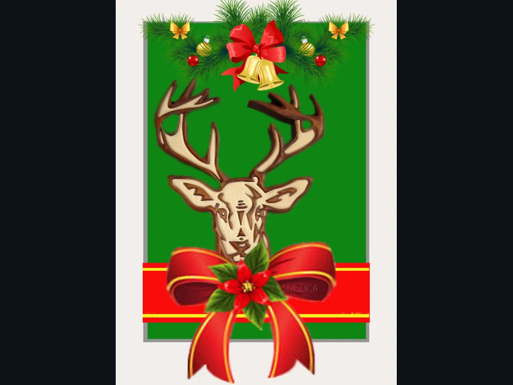 Ключови фрази: Картичка пожелание коледна звезда елен поздрави звънчета борови клонки украса червена панделка честит празник здраве любов