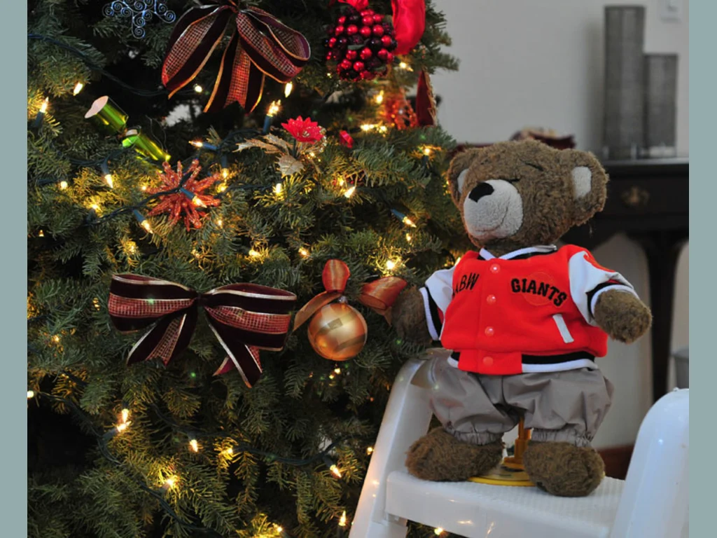 Плюшено мече до коледна елха.
