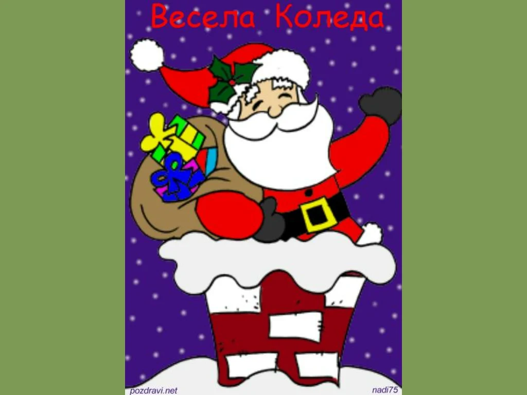 Ключови фрази: Картичка поздрави дядо коледа звънчета герлянди подаръци пожелание честито рождество христово честита нова година