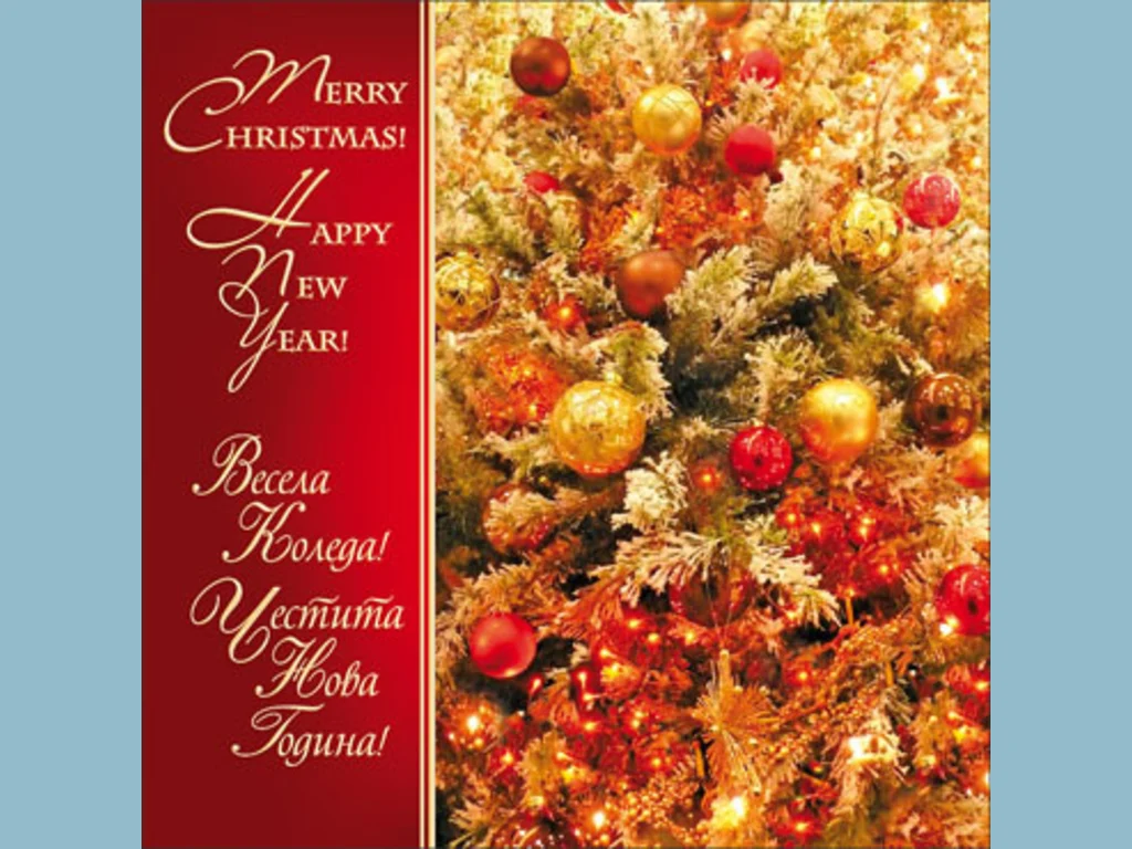 Ключови фрази: Приказна украсена светеща коледно новогодишна елха уютен дом стълбище звездички семеен празник картичка пожелание поздрави здраве любов сбъднати мечти