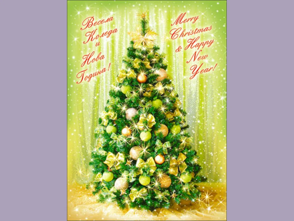 Ключови фрази: Картичка поздрави пожелание здраве щастие любов разбирателство украсена коледна красива светища елха бели герлянди звездички играчки