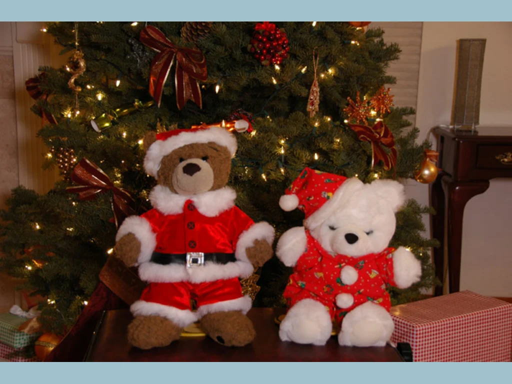 Ключови фрази: Картичка мили дечица плюшени играчки прегърнати приятели коледна украсена светеща елха подаръци очакване сбъдване мечти
