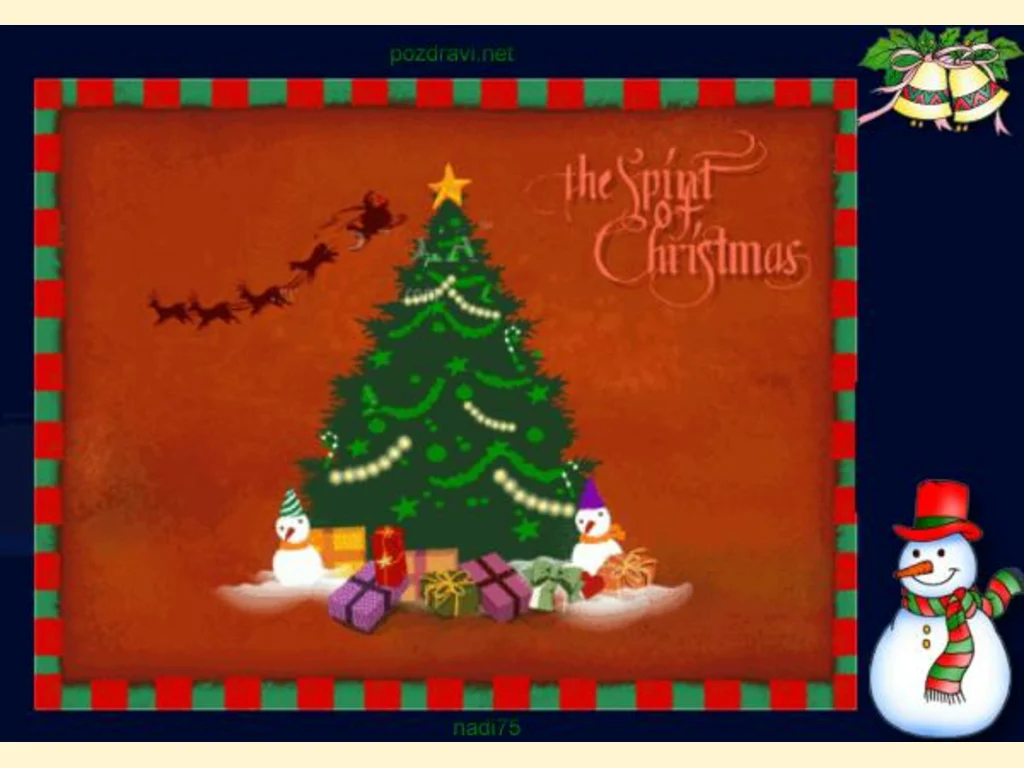 Ключови фрази: Картичка пожелание поздрави коледна украсена елха звънчетазвезда шейна елени украса снежни човеци подаръци мечти сбъднати чудеса