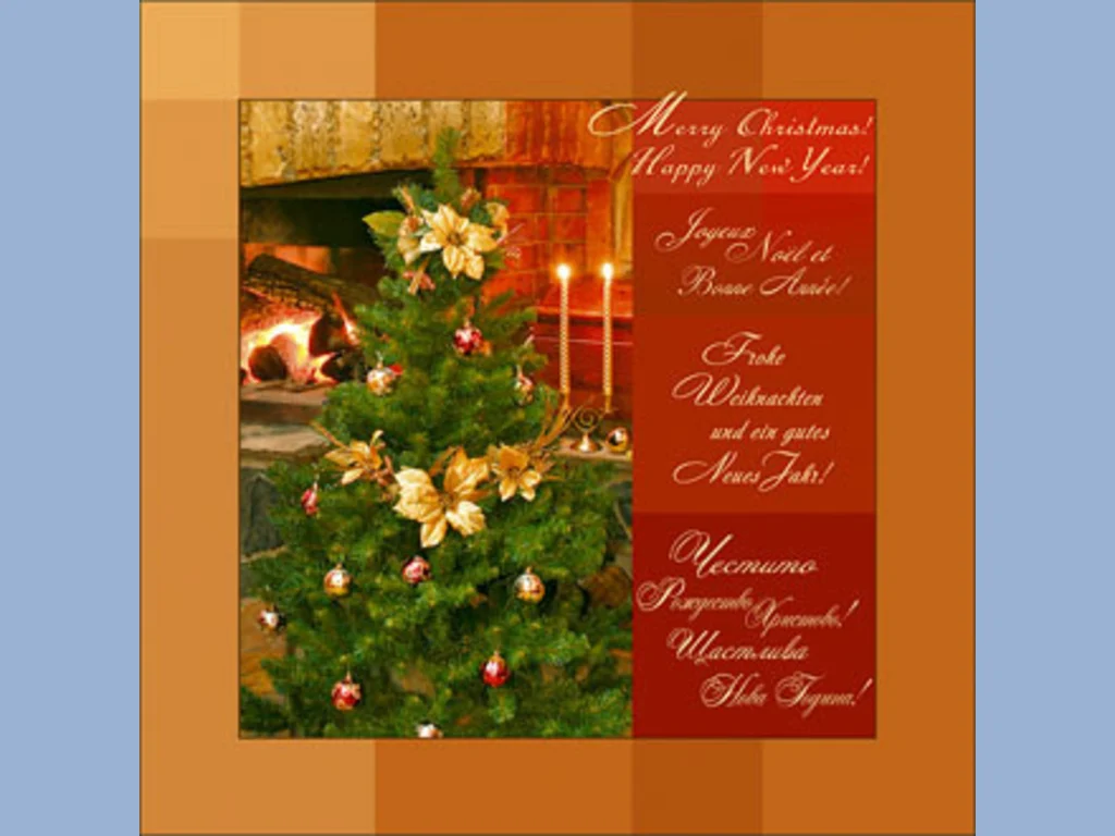 Ключови фрази: Камина жарава свещи пламъчета коледна звезда елха семеен домашен уют картичка пожелания поздрави щастлива нова година честито рождество Христово