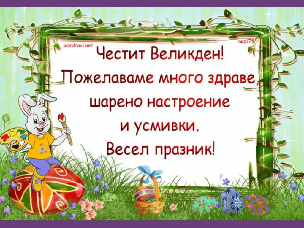 Ключови фрази: великден поздрави пожелания зайче кошничка с яйца рисувани яйца