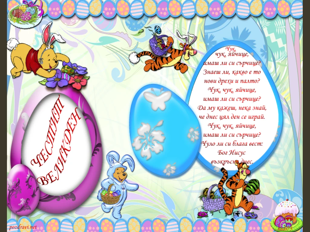 Ключови фрази: Великден мечо пук картичка яйце пожелание поздрав