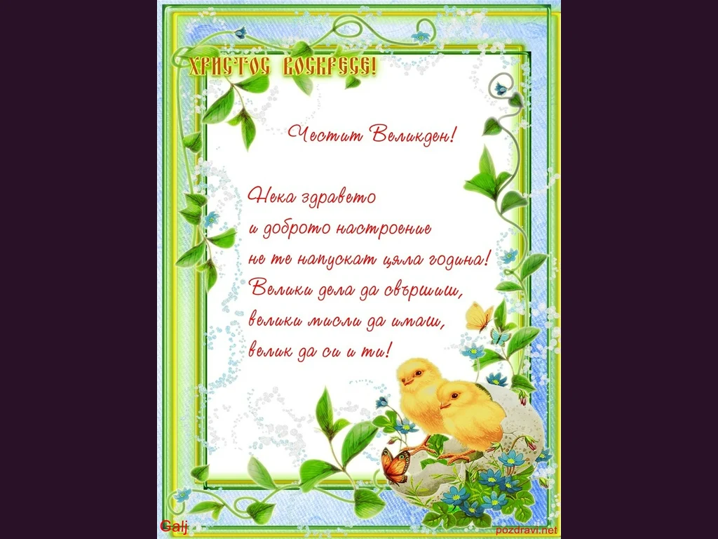Ключови фрази: Великден картичка пиленце клонки пеперуди