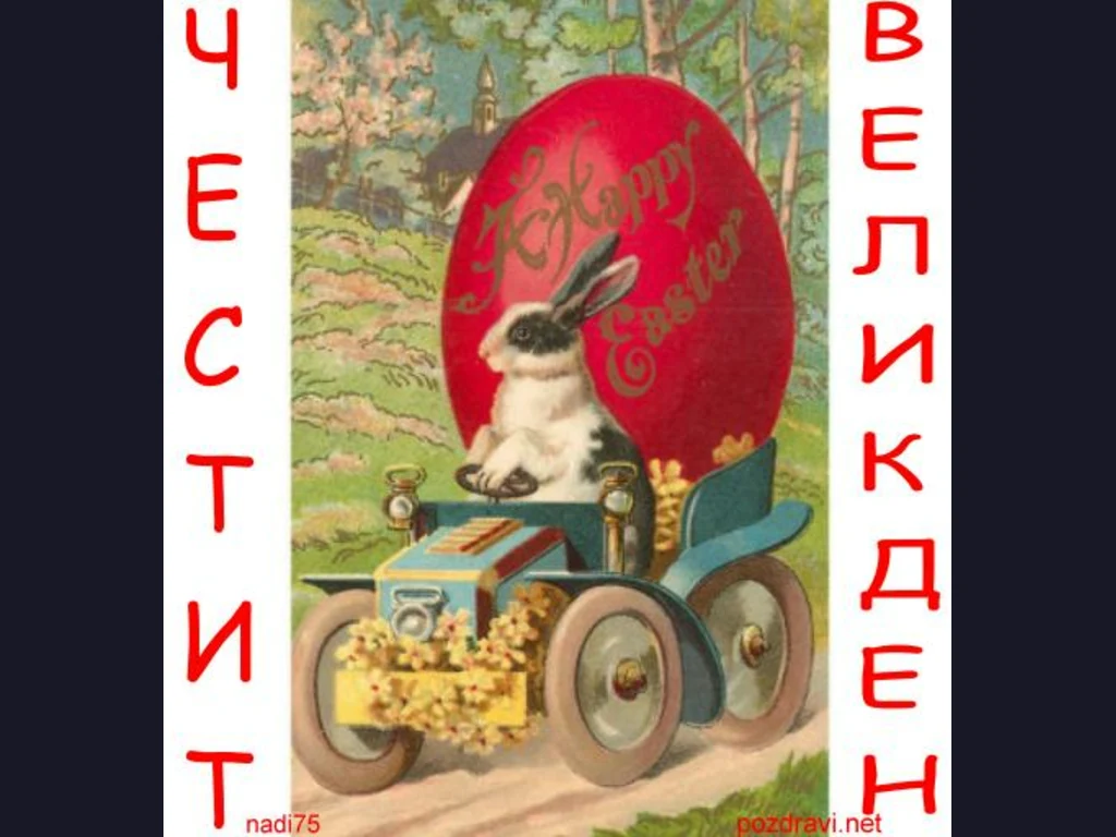Поздрав за всички християни ... и не само. Много хубава картинка заек с трактор вози яйце :)