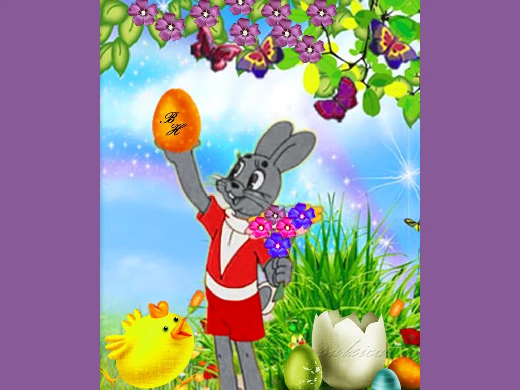 Ключови фрази: Зайче пиленце зелена трева шарени яйчеца цветя клонки пеперуди пъстрота красота слънце ведрост небе сияние