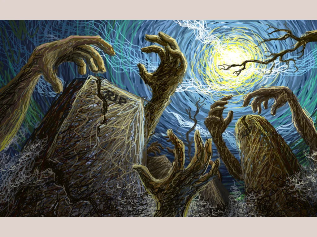 Картичка възкръснали надигащи се ръце от отвъдното!
