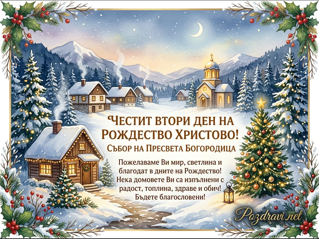 Ключови фрази: Коледна картичка, Втори ден Рождество, Зимна картичка, Празничен поздрав, Събор на Богородица
