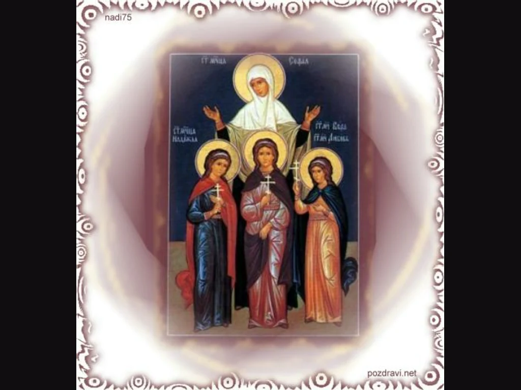 Ключови фрази: Вяра Надежда Любов тяхната майка празник София икона картичка поздрав пожелания имен ден празнуват Софка Софи Вера Верк Надя Надин Любомира Любомир Люба Любо Любчо Любен