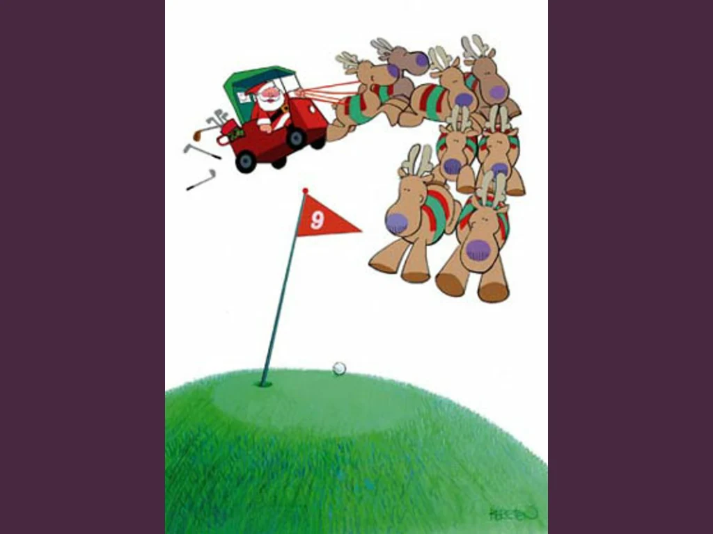 Ключови фрази: Дядо Коледа картичка елени голф игрище игри веселие любов празник пожелание любов шейна скеч забавна смешна комикс рисувана