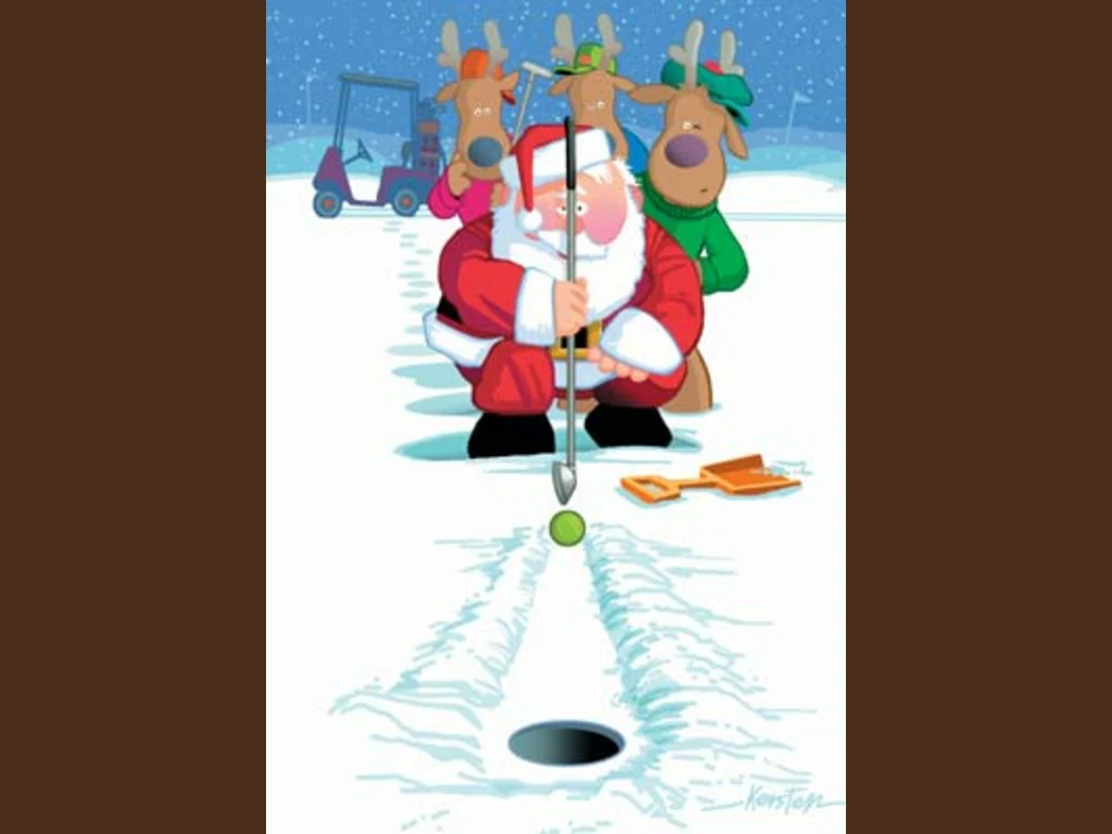 Ключови фрази: Дядо Коледа картичка елени леден голф игри весел празник шейна скеч забавна смешна комикс рисувана