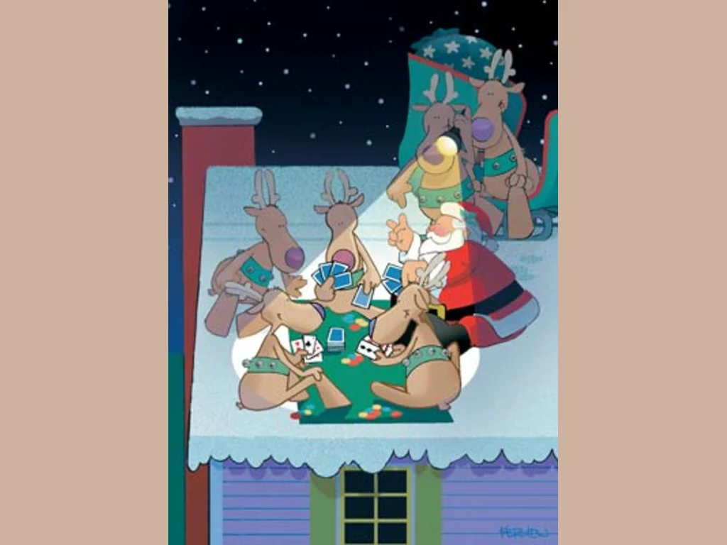 Ключови фрази: Дядо Коледа картичка веселба игра карти забава елени еленчета шейна скеч забавна смешна комикс рисувана