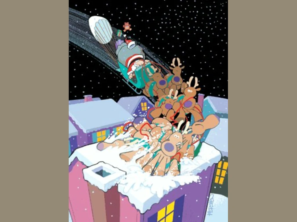 Ключови фрази: Дядо Коледа картичка елени звезди игри забава нощ рождество Христово шейна скеч забавна смешна комикс рисувана