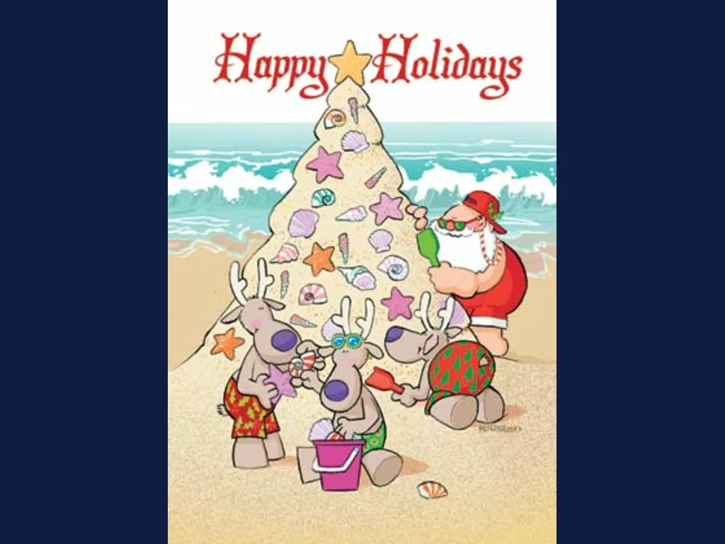 Ключови фрази: Дядо Коледа картичка елени щастлив празник бряг вълни почивка игри скеч забавна смешна комикс рисувана